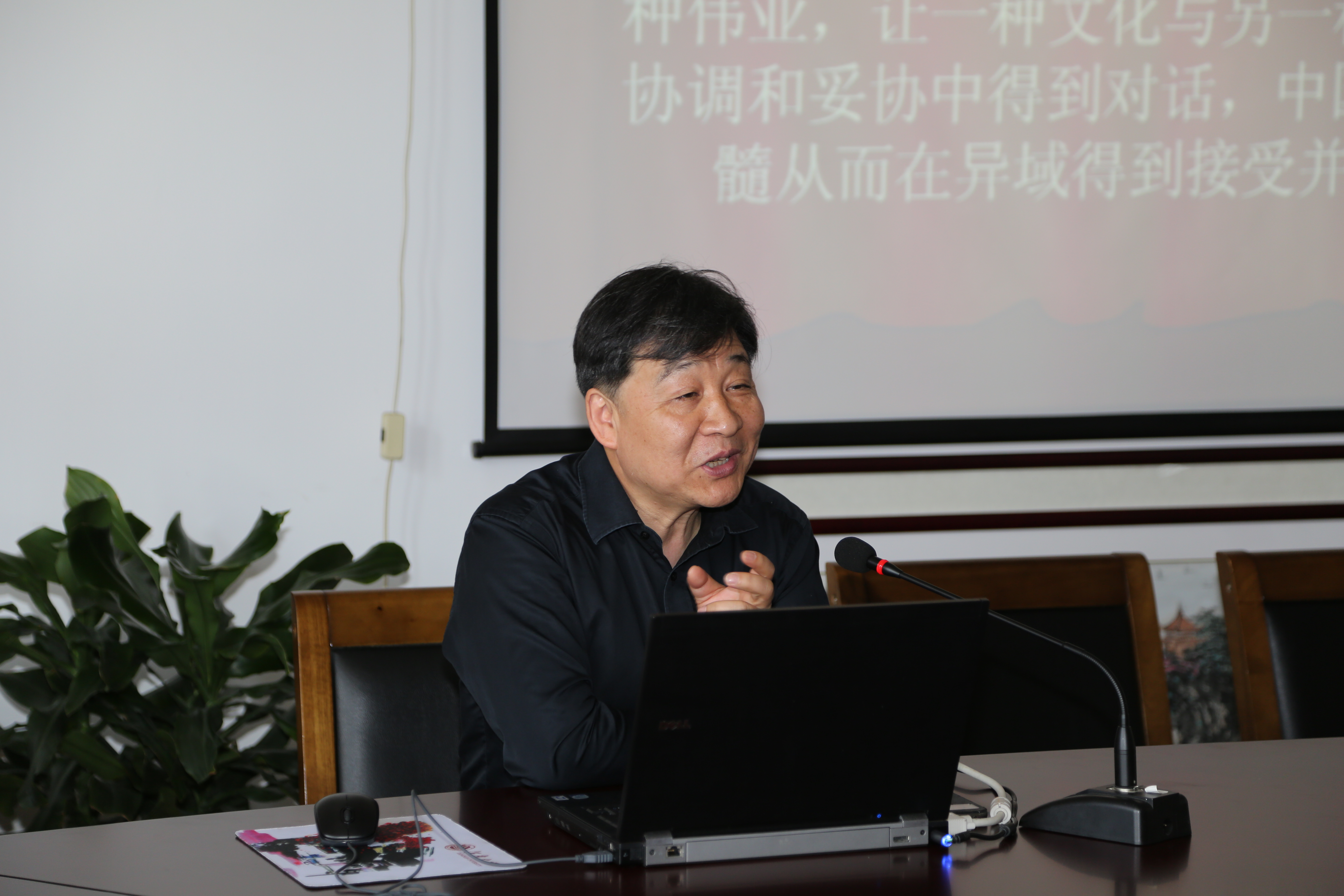 428下午,清华大学外文系罗选民教授应邀在yl7703永利集团大会议室(A349)做了题为“文化自觉与中国经典英译”的学术讲座,讲座由翻译研究团队负责人王金安教授主持,学院领导和师生共50余人参与了本次学术活动。