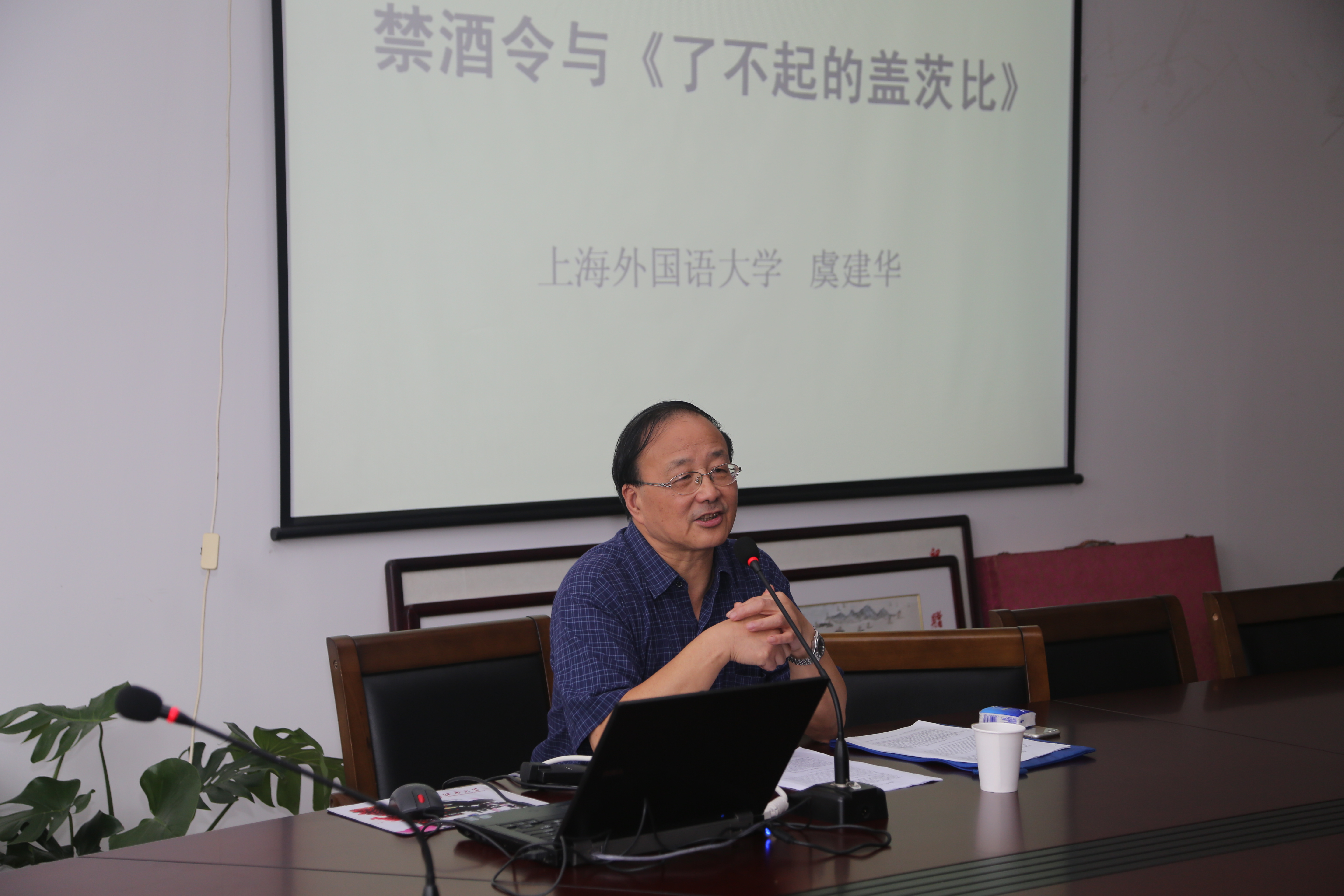 虞建华教授围绕“禁酒令和《了不起的盖茨比》”,从禁酒与饮酒的全新角度,对美国文学经典《了不起的盖茨比》做了生动的解读。虞教授旁征博引,通过文化语境、文化对抗、文化符号及文化视角等方面,将小说置于历史语境和文化背景中进行剖析,不仅让在场师生对作家菲兹杰拉德及其作品《了不起的盖茨比》有了更新的认识,也为在场师生未来的文学研究提供了新的启发。
