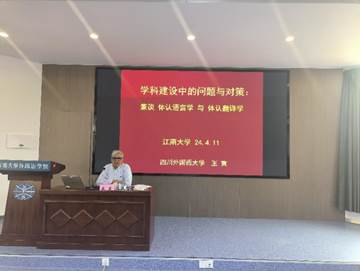 2024年4月11日下午,四川外国语大学资深教授、博士生导师王寅教授为我院师生作了题为“体认语言学与体认翻译学”的学术讲座。讲座由yl7703永利集团院长方文开教授主持,学院全体教师、研究生参加了本次讲座。