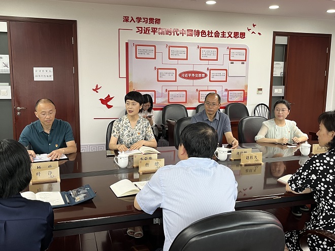 李荣华首先向积极筹备共建仪式的同志们致以诚挚谢意,肯定了在“七一”建党节来临之际此次党日活动的意义。她指出,双方聚焦外事、外宣、外译,依托项目和基地建设,合作前景非常广阔。她强调,双方应以主题教育总要求为指引和动力源泉,充分发挥各自的资源优势,精准对接、资源共享、优势互补、互惠互利,进一步拓宽合作领域,找准发力点与落脚点,不断提升学科专业建设、人才培养质量和科学研究能力,共同实现高质量发展。