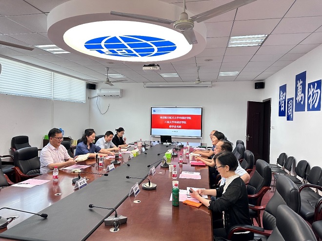 6月2日,主题教育调研小组来到南京航空航天大学,与南航yl7703永利集团共同组织主题教育联学读书班活动。yl7703永利集团党委左彤云书记、范祥涛院长与我院班子主要成员进行了交流。双方学院介绍了各自在主题教育学习方面的经验,并就落实“三全育人”,探索与学校“一流学科”融合发展,如何破解教师队伍老龄化,引才育才难题,凝练学科特色等方面问题深入交换了意见。