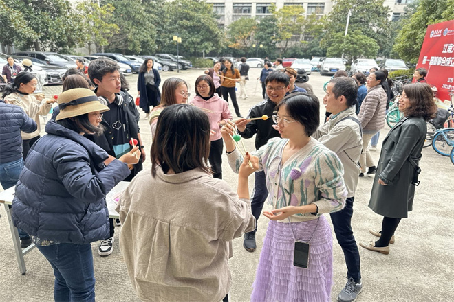 趣味运动会设置了合力建塔、投壶、纵横天下、乒乓球、珠行万里等比赛项目。参赛的老师们斗志昂扬,奋勇争先,场下观战的老师出谋划策,加油助威,欢快的气氛席卷了整个场地。