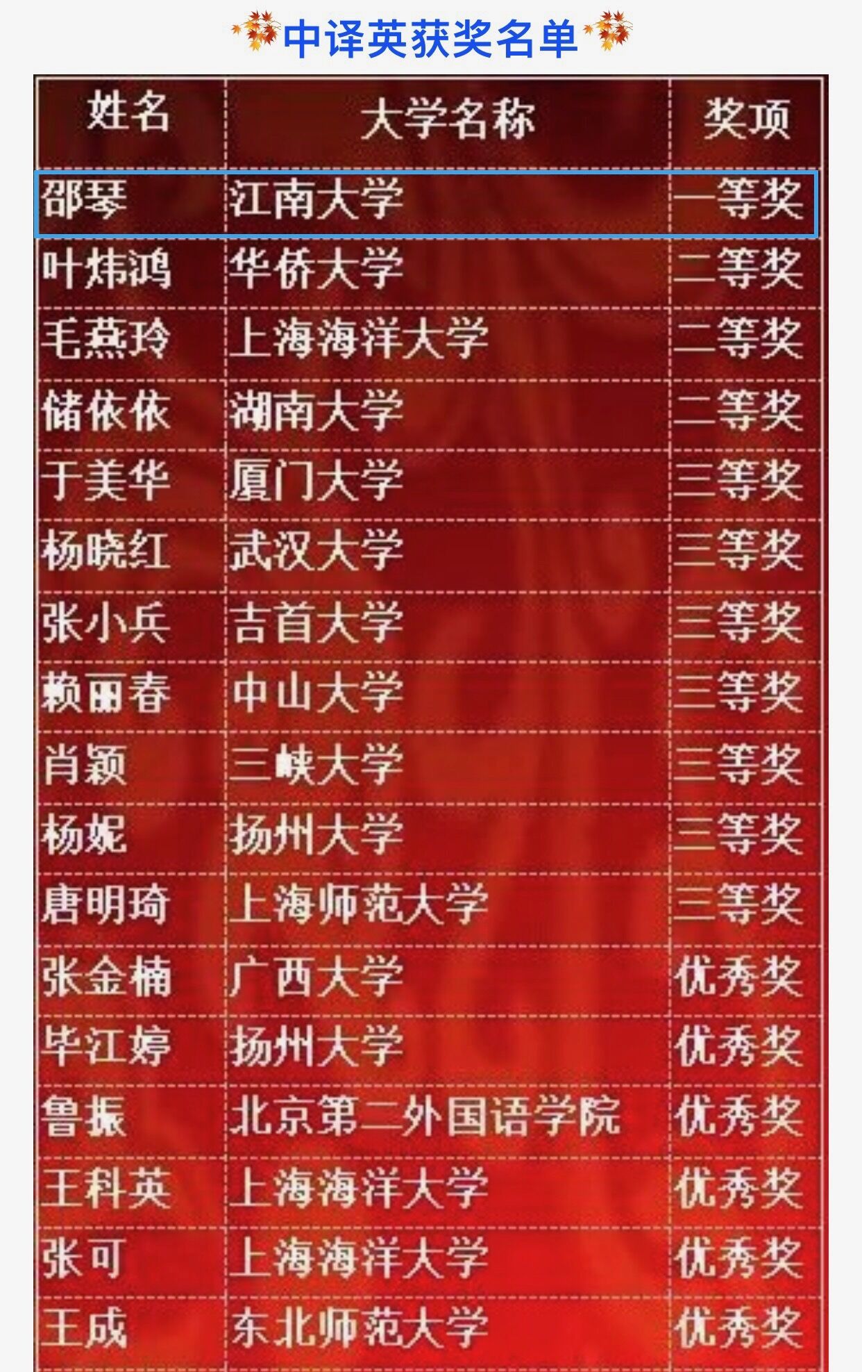 从10月10日到11月9日,在为期一个月的比赛时间内,邵琴同学对汉语原文反复斟酌,查找了大量海洋文学知识,并通读了数篇国际有关海洋文学的优秀作品,对地道而专业的英语用词及表达熟稔于心。面对初译阶段的诸多困惑,求教于学院教师郑赛芬博士和卞正东副教授,探讨“列姑射神人”、“长臂捕鱼人”等文化负载词的译法。邵琴同学依靠优异的中文理解能力,强大的英语表达能力以及耐心细致的优秀品质,在完成初译稿之后,又数易其稿,逐步改善译文,最后从众多985学校(如:北京大学,武汉大学,中山大学,厦门大学,湖南大学,重庆大学等等)的优秀参赛选手中脱颖而出,独占鳌头,喜夺冠军。