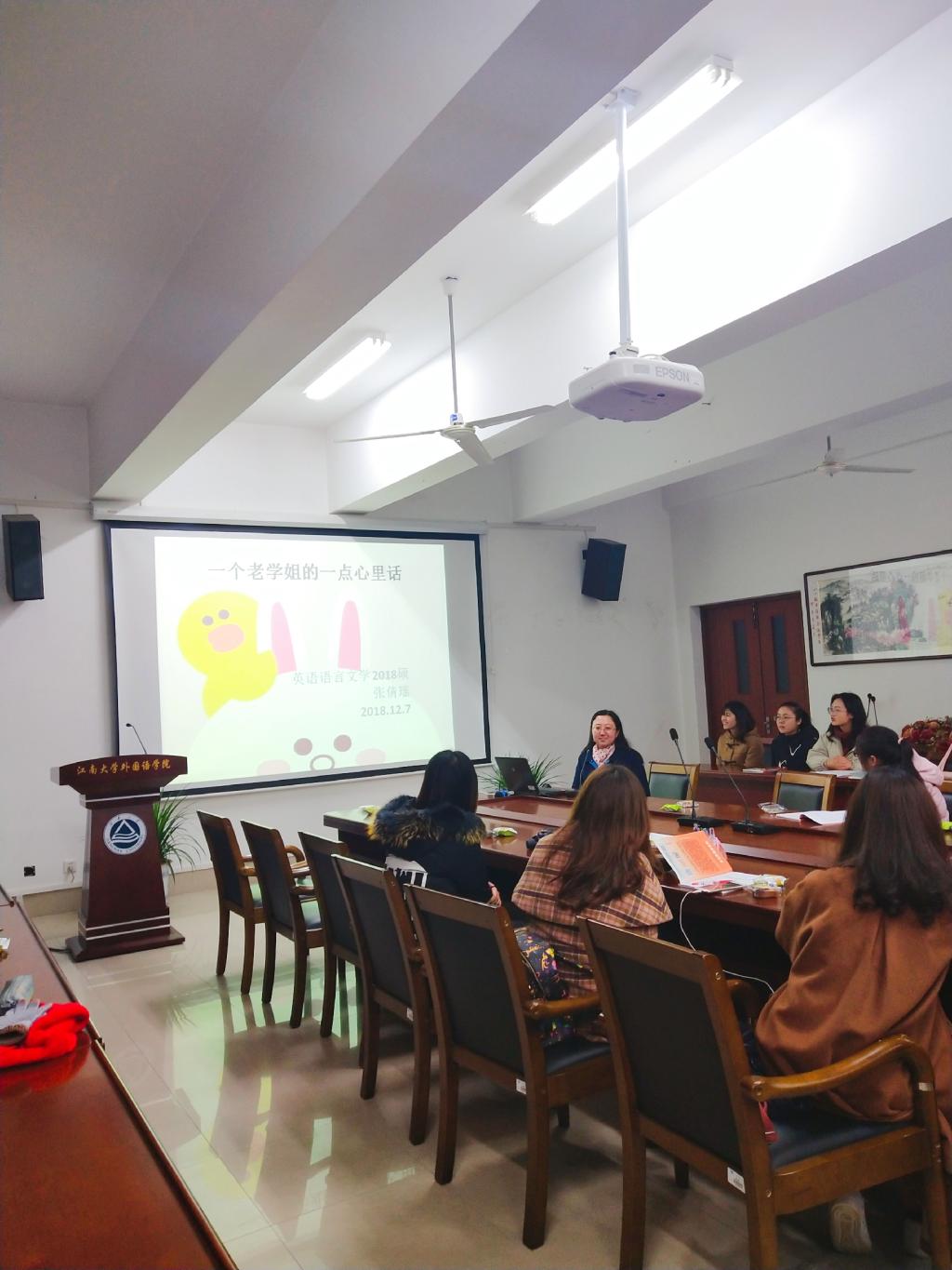 为积极引导本科生进一步学习深造,帮助本科生了解考研方面的信息,解答他们有关考研的种种疑惑,2018年12月7日晚,yl7703永利集团研本交流会在学院A349会议室召开。此次研本交流会在分团委指导下,由我院研会承办。本科英语、日语专业的30余位同学参与交流会。