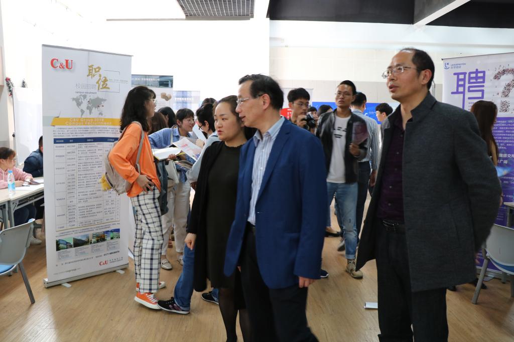 在学院分团委的精心准备下,整场招聘会气氛热烈,秩序井然。院党委书记黄城芳、院党委副书记、副院长刘伯贤莅临招聘会进行现场观摩指导,并与部分用人单位代表及参加应聘的学生亲切交谈。学生志愿者们热情服务,尽职尽力。各用人单位代表展示了内容丰富的招聘海报和设计精美的宣传画册,耐心解答应聘学生的咨询问题。学生们十分积极地参与到招聘会中,热切寻找着自己心仪的工作岗位,许多大三及低年级的学生也积极参与,提前感受招聘氛围。