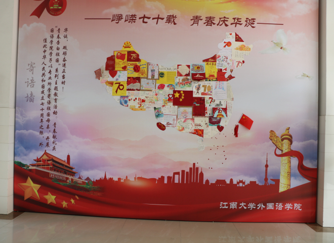 寄语祖国手卡制作活动共收集来自研究生、本科生团支部120余份寄语收卡。9月28号下午,yl7703永利集团学生会宣传部的同学将收集的收卡制作寄语墙。中国的地图像一只昂首傲立雄鸡,“一唱雄鸡天下白”,雄鸡报晓送走了长夜,迎来了曙光,新中国七十年的风雨历程和伟大成就激发青年学生爱国之情。为表达对祖国热爱,外院学子将收集的寄语卡片制作成祖国地图,以这幅崭新的雄鸡地图寓意着中华民族的伟大复兴不可阻挡。