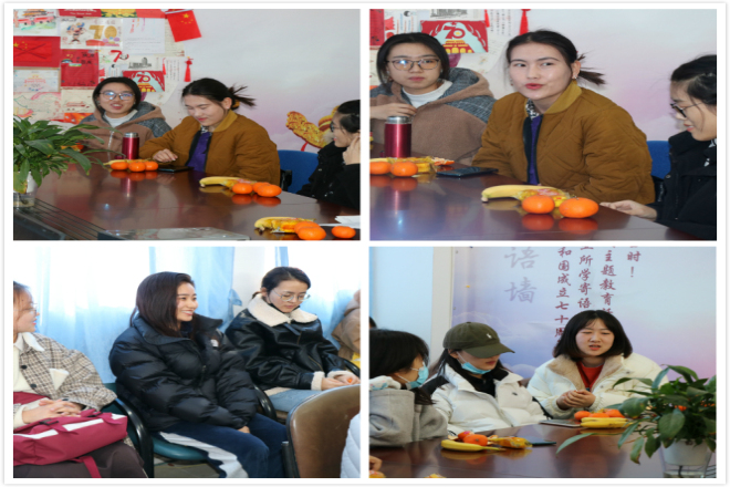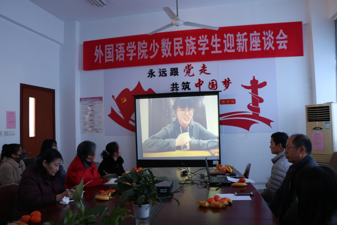 会议一开始,获得学校十佳大学生称号的冯小宸同学,通过在线视频的方式为现场的学生分享了自己的学习感悟和奋斗故事,她以自己学习“逆袭”的经历鼓励大家努力学习,勇敢挑战。接着,现场的同学纷纷分享了自己在校的学习生活情况、遇到的困难以及自己民族的春节习俗。来自苗族的19级许维念同学说:来到yl7703永利集团后,感受到了老师和同学的关心,大学时间过得很快,希望可以在yl7703永利集团通过自己的努力获得成长。来自柯尔克孜族的迪娜热同学主要说了自己在专业学习上的苦难,她表示自己目前还在摸索学习方法阶段。整个分享交流环节轻松愉快,现场气氛融洽。