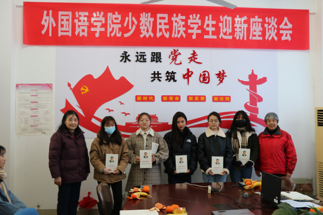 为了进一步了解我院少数民族学生的学习和生活情况,帮助我院少数民族学生更好的适应大学生活,12月24日下午,学院在A425办公室召开2020少数民族学生座谈会。学院党委副书记刘伯贤老师、学院关工委常务副主任鲍国庆老师、学院关工委组织员吴艳敏老师、学院分团委书记杨艳老师参加座谈会,座谈会邀请了学院少数民族学生代表参加。会议由辅导员苗文建老师主持。