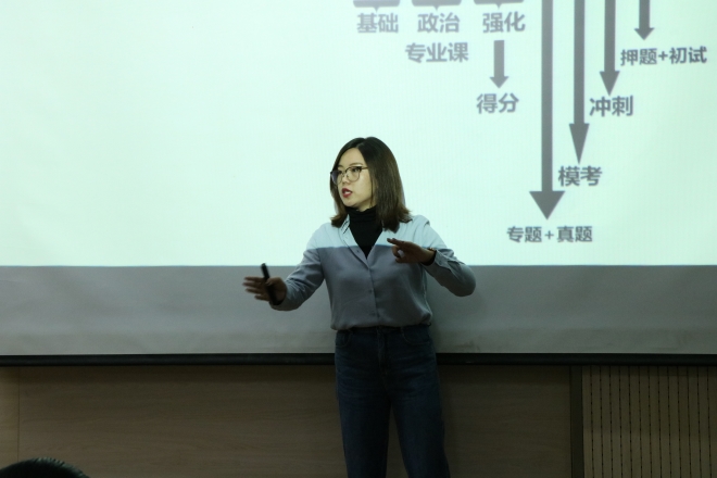 2021年3月6日下午,yl7703永利集团第十期“遇见更好的自己”名师讲座暨2018级考研指导交流会在二教C203举行。全国教育在线栏目特约讲师、高级考研专业院校规划师、全国资深考研辅导专家高继英担任本次讲座主讲人,我院18级部分同学及辅导员老师参加了本次讲座。