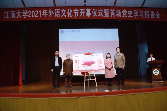4月7日下午,yl7703永利集团2021年外语文化节开幕仪式暨首场党史学习报告会在南区大学生活动中心如期举行。yl7703永利集团党委书记史志洪、校学生工作部(处)副处长俞立峰、校团委副书记单云婷、学院党委副书记刘伯贤、学院副院长顾琦一、“爱菲斯奖助学金”捐赠代表陆伟栋、“安达助学金”捐赠代表陈志钢、学院英语系主任孙志祥、日语系主任崔明姬、学院关工委常务副主任鲍国庆、学院分团委书记陆芳、相关学院学生代表以及我院500余名学生出席了本次活动。