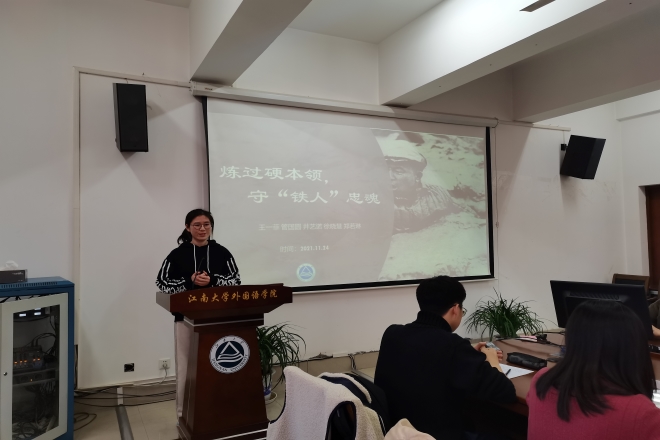 接着,举行了“礼赞赤子功勋,续写百年华章”主题演讲比赛。演讲比赛以党员功勋事迹及其体现的共产党人精神谱系为主线,共有6名团小组代表参赛。参赛同学结合个人感悟,介绍了英雄事迹,歌颂了榜样力量。董俣彤同学分享了“铁肩担道义,精神启后人”李大钊的伟大建党精神;陈俊伟解读了“红色血脉,巾帼英雄”——赵一曼的英勇抗战精神;王一菲同学讲述了“炼过硬本领,守铁人忠魂”王进喜的铁人精神;周叶苛同学分享了“一人千古,千古一人”邓小平的改革开放精神;曹逸同学讲述了“于国有为,敏言慎行”中国氢弹之父——于敏的“两弹一星”精神;张赛同学介绍了“心有复兴志,细嗅梅沁香”张桂梅的感人事迹与无私精神。在演讲过程中,为提高同学的学习与参与热情,还穿插了红色歌曲、红色影视片段和党史知识的互动答题环节,活跃了现场气氛。蔡召冲老师、鲍国庆老师、陆芳老师及学生评委张龙飞同学根据现场表现对同学们进行打分。