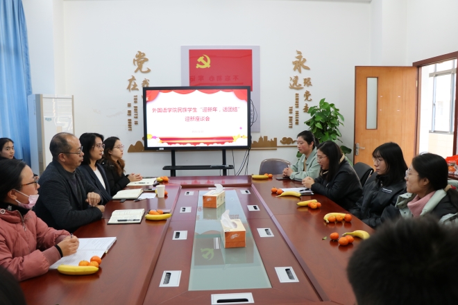 为了进一步了解我院少数民族学生的学习和生活情况,帮助少数民族学生更好的适应大学生活,12月22日下午3:30,yl7703永利集团在A331召开2021年少数民族学生“迎新年,话团结”迎新座谈会。学院党委副书记刘伯贤老师、新疆维吾尔自治区教育厅派驻yl7703永利集团教师古扎努尔、学院关工委委员吴艳敏、学院分团委书记陆芳、学院行政党支部华清、王莉莉参加座谈会,座谈会邀请了学院少数民族学生代表参加。会议由陆芳主持。