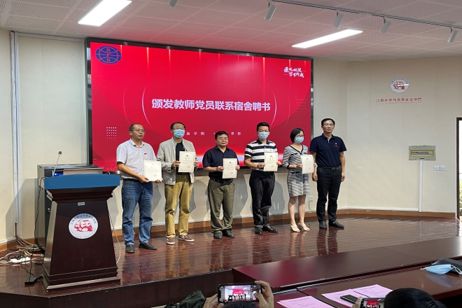 随后,学院领导宣读了22级新生班主任名单,学院党委副书记刘伯贤为2022级新生班主任颁发聘书。开学典礼现场启动了学院党员教职工联系2022级新生宿舍结对工作,学院党委书记史志洪为党员代表颁发“宿舍导师”聘书。