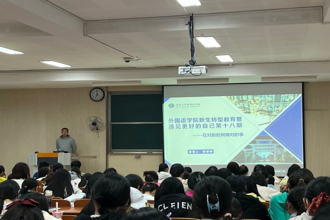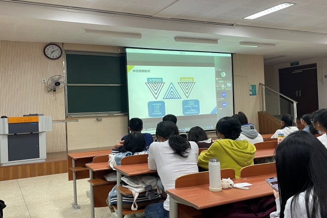 10月20日,yl7703永利集团新生转型教育暨“遇见更好的自己”第十八期在教学楼1A410开展。本次活动以《在对的时间做对的事—文科生的创业历程》为主题,邀请了学院优秀毕业生、脑洞英语课堂创始人谢婷婷线上分享创业经验,学院22级新生以及部分21级、20级同学参加分享会。分享会由辅导员苗文建老师主持。