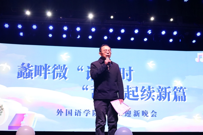 晚会按照疫情防控要求进行。yl7703永利集团院长方文开为晚会致辞。方文开首先回顾并肯定了本学期学院在文体活动方面取得的成绩,鼓励大家奋发努力,在新的一年再创佳绩。方文开寄语大家:讲好中国故事,外语人重任在肩,各位同学们要主动迎接新时代,新征程,新挑战,新机遇,踔厉奋发,笃行不怠,德智体美劳全面发展,为中华民族的伟大复兴而奋斗!