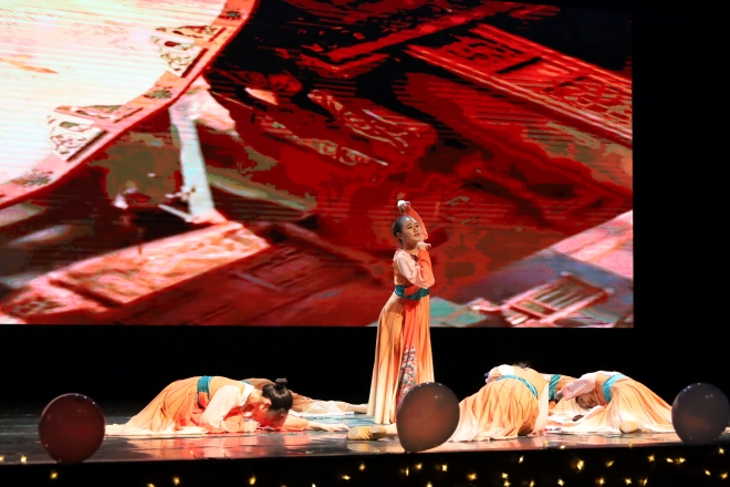 晚会由狂花乐队表演的《言って》开场,气氛热烈,燃爆全场。第一篇章淡墨韵景忆长安:由艺术团带来的民舞《唐印》,舞姿优美,唐韵悠长;器乐《寻你》除了学生的乐器表演,还邀请了yl7703永利集团厨师王磊带来萨克斯演奏,现场掌声雷动;话剧《白蛇前传》由外院星月剧社表演,他们将英语融入历史背景,幽默诙谐的风格让观众笑声连连;戏曲《锁麟囊》带领大家走进程派京剧,感受到了中华传统文化的魅力。第一篇章结束,学院副院长顾琦一颁发幸运抽奖三等奖。