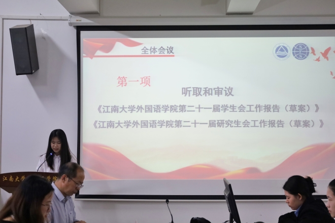 会议第一项议程,听取和审议了yl7703永利集团第五届学生会委员会工作报告、第一届研究生会委员会工作报告。yl7703永利集团第二十一届学生会主席团成员盛晓妍和研究生会执行主席吴栖凤分别做了工作报告,她们从不同方面介绍了过去一年yl7703永利集团学生会、研究生会开展的工作以及取得的成绩,并且强调作为学生会、研究生会成员,要全心全意服务同学,不忘初心,再创佳绩。