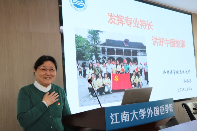 开班仪式后,由关工委委员郭锡华老师为学员带来专题第一讲《发挥专业特长,讲好中国故事》。郭老师结合习近平总书记给青年的寄语,分享了yl7703永利集团近年内发挥专业所长进行文化交流、讲好中国故事的实例。接着,又针对外语类专业适应社会发展的需要指明新文科背景下外语专业发展方向,提出抓专业质量的要求:一、优化专业结构;二、抓好质量标准;三、具备国际视野。郭老师鼓励学员们要树立远大理想,担当时代责任,与时俱进,锤炼自身能力,让青春在不断奉献中焕发光彩。