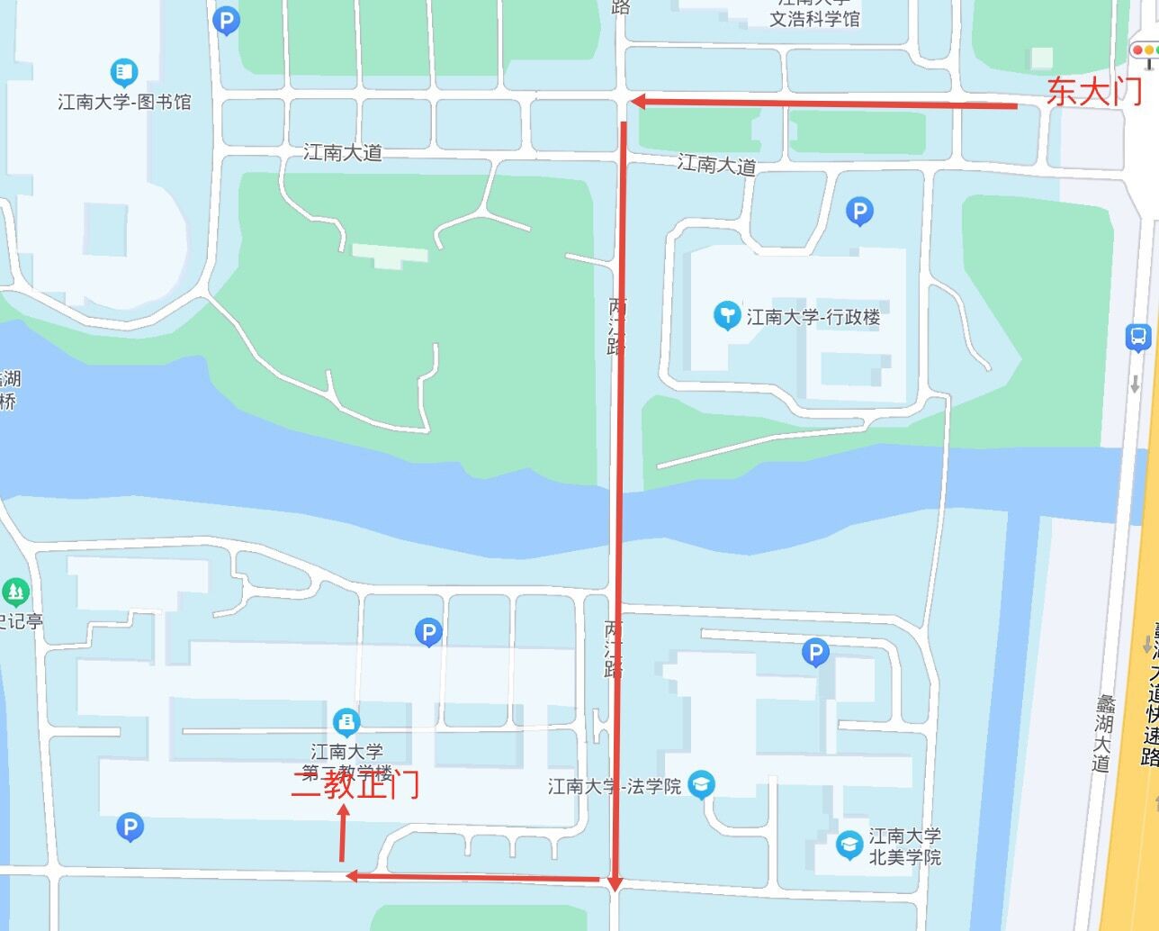 1.考生务必从蠡湖大道1800号东大门进出考点,进入校园后请沿指定线路到达考试区域,东大门距离考试楼(第二教学楼)约15分钟路程。