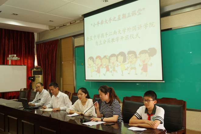 仪式开始,金星中学副校长程俊明首先向参加本次活动的我校yl7703永利集团志愿者们表达了欢迎与感谢。同时,希望即将被帮扶的学生能够通过星期三课堂学习大哥哥大姐姐们勤奋学习的态度和持之以恒的毅力,抓住这个机会,扬长避短,学有所进。院副书记刘伯贤则表达了对金星中学尊重学生个体差异、有的放矢进行有差别教学的“自主分层教学”理念的肯定,激励金星学子在“星期三课堂”的学习中开阔眼界,克服困难,努力奋进,同时希望志愿者们能够传递知识,传递正能量。随后,青协志愿者代表发言,表示将坚持到校送教,践行志愿服务精神,争做新时代青年榜样。金星学生代表也表示,将以此次机会为契机,牵着江大哥哥姐姐的大手,端正学习态度,提升学习动力,调整学习方法。