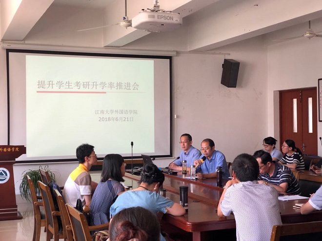 龚晓斌院长首先报告我院近年考研情况并传达学校相关会议精神,提出大学外语教学水平的提高对学生考研成绩提升起到基础作用,指出yl7703永利集团学生考研跨学科比例高的特点;英语系主任孙志祥和日语系主任崔明姬分别在前期调研的基础上,提出了如何提升本专业学生考研率的措施与办法;方文开副院长表示学院将培养方案的改善、实验教学平台的更新等方面来保障提高考研升学率;学生工作组成员和班主任交流了如何加强学业指导,帮助学生尽早确立考研目标,解决考研过程中遇到困难。