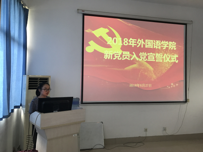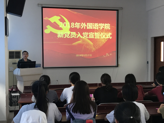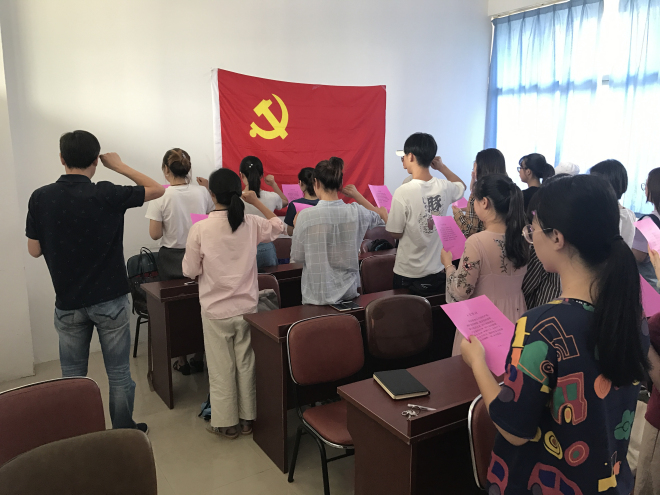 2018年6月27日下午,yl7703永利集团在A433举行2018年新党员入党宣誓仪式。参加本次入党宣誓仪式的有院党委书记黄城芳、党委秘书许广玉、分团委书记杨艳、辅导员张圆、黄颖以及2018年全体新党员,仪式由杨艳主持。