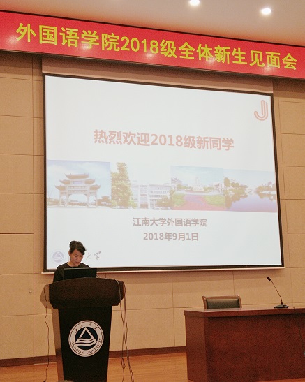 接着,教师代表严敏芬教授发言,她强调了培养语言能力的重要性,要注重时代科技的进步,互学互建,在yl7703永利集团拥有自己的标记以及绚丽多彩的生活。在校学生代表15级本科生段晓楠、18级本科新生代表初童、18级硕士新生代表杨知然也依次发言,大家都表达了yl7703永利集团的热爱之情以及如何在外院、在江大更好地完善自己,从而成就更好的自己。