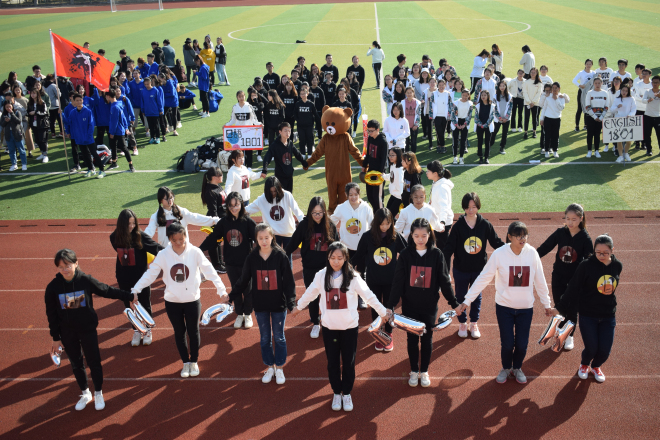 主持人宣布开幕式开始后,首先进行的是分列式表演。各班在班旗的引导下逐一走过主席台,他们有的呼喊口号,抒发壮志豪情;有的高吟诗歌,为自己加油;有的表演了动感的舞蹈,赢得全场雷动的掌声;各个班级别出心裁,方阵表演的节目让人眼前一亮。