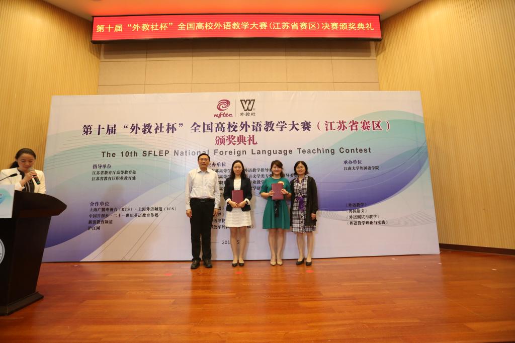 最后,举行隆重的颁奖典礼。吴正国副校长、徐萍副处长、孙玉社长等为各个组别的获奖选手分别颁发了获奖证书。至此,第十届“外教社杯”全国高校外语教学大赛江苏省赛区决赛在上海外语教育出版社团队和我校yl7703永利集团团队的通力协作下圆满落下帷幕。