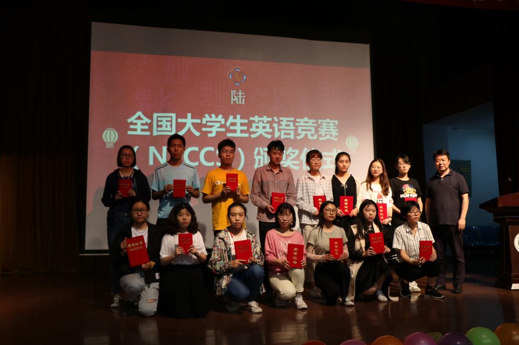 校学工部副部长汪双喜老师为大英赛获奖学生颁奖