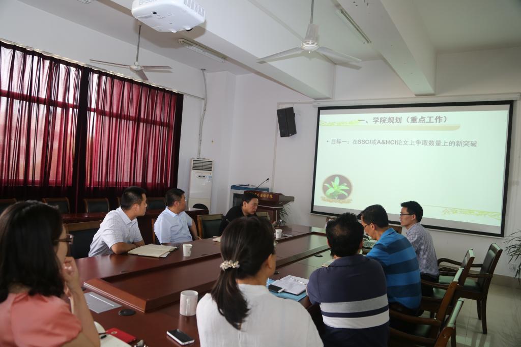 6月7日下午,陈卫副校长携社科处处长刘焕明教授、副处长浦徐进教授赴yl7703永利集团调研学院科研组织管理、规划等情况,学院党政班子与科研、研究生秘书等出席了调研会。调研会由龚晓斌院长主持。