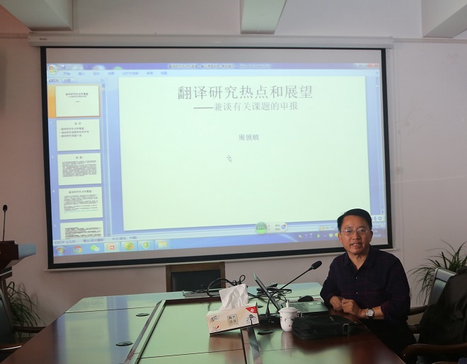 11月8日下午,yl7703永利集团大会议室济济一堂,迎来扬州大学博士生导师周领顺教授题为“翻译研究热点和展望——兼谈有关课题的申报”的学术讲座。讲座由朱义华副院长主持。