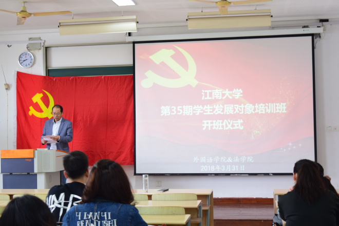 2018年3月31日上午8:30,yl7703永利集团第35期学生发展对象培训班开班仪式在2D102教室顺利召开,外国语学院党委副书记、副院长刘伯贤老师、yl7703永利集团分团委书记杨艳老师、马克思主义学院陈永杰老师出席了此次会议。本次会议由yl7703永利集团党委副书记刘伯贤老师主持,并邀请陈永杰老师为本期学生发展对象做了一场精彩的讲座。
