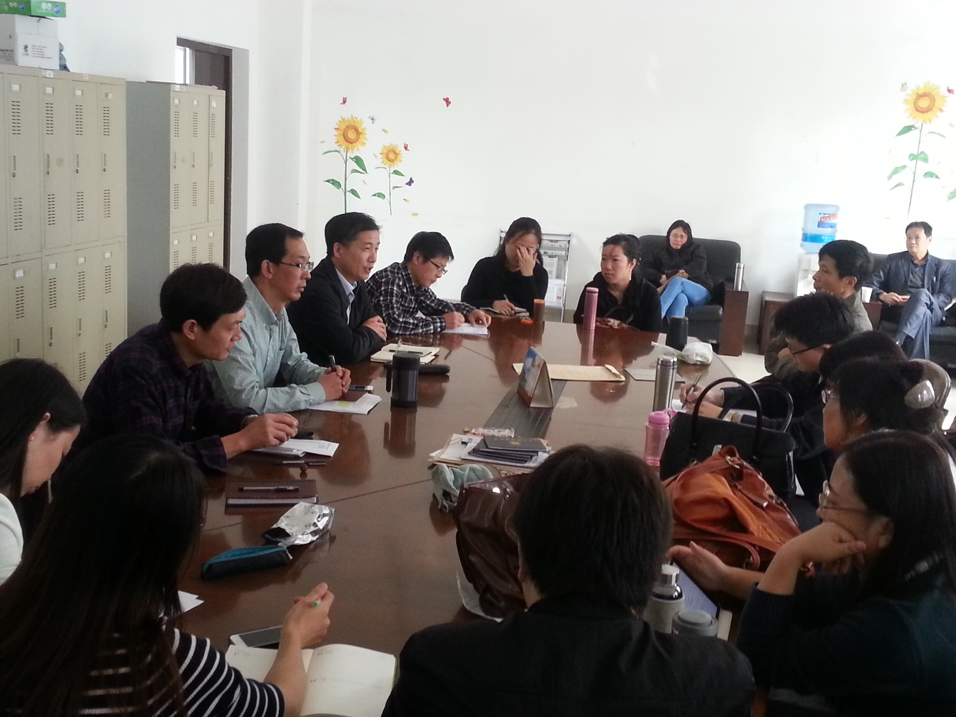 10月22日下午,英语系中外教员欢聚一堂,就英语系近期的学术安排、人事变更、中外协作、教研安排与团队建设等进行了传达与交流。教研活动由副院长李健雪教授与英语系主任孙志祥教授先后主持,院长龚晓斌教授与学院党委兼人事秘书许广玉老师也参加了部分活动。在集体活动后,英语系三个教研创新团队分三组进行了广泛而深入的交流与研讨。