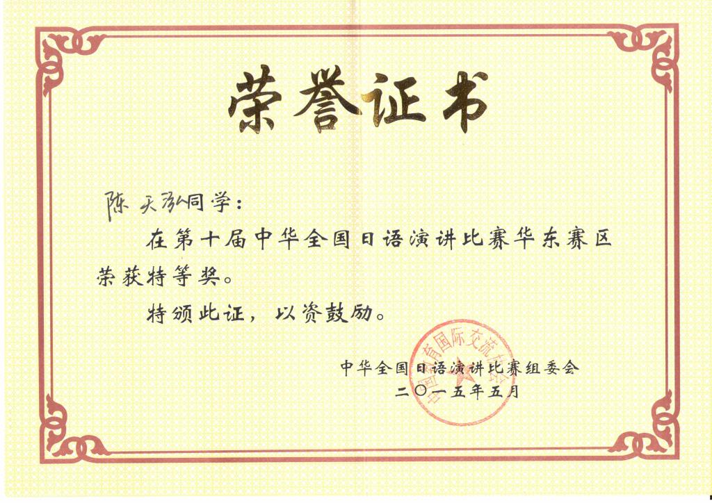 陈天泓同学将代表华东赛区于7月赴东京参加决赛,在此祝愿他继续取得好成绩!