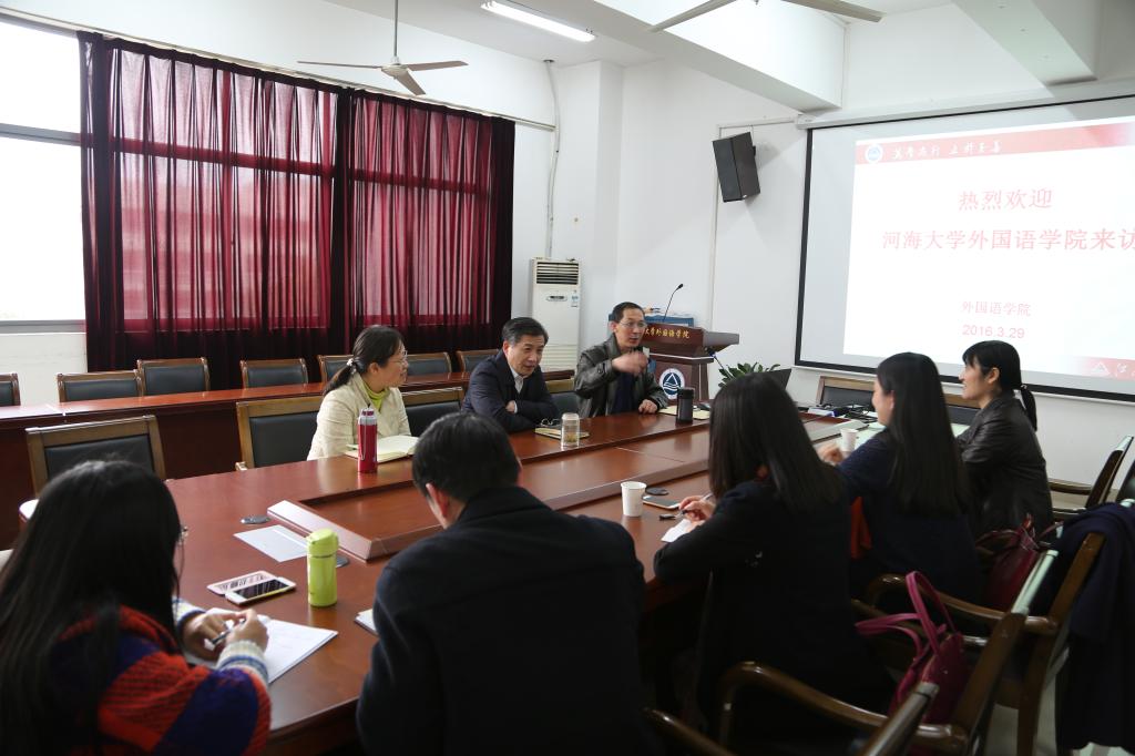 329日下午,河海大学yl7703永利集团杨荣华副院长带领朱志梅副书记、系主任等一行5人来访。我院龚晓斌院长、李健雪副院长、施惠平副院长热情接待了来访宾客。