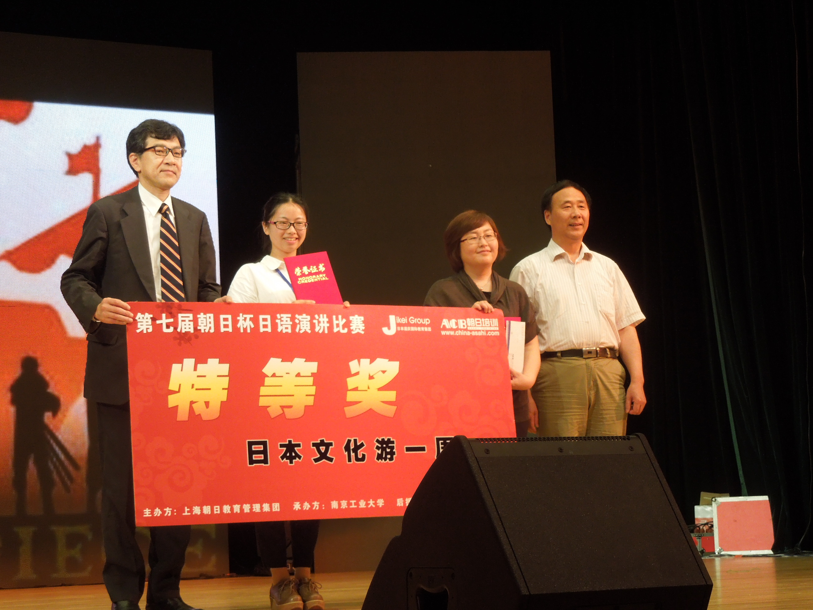 524日下午,第七届朝日杯华东区大学生日语演讲比赛总决赛在南京工业大学江浦校区大礼堂顺利落下帷幕。我院日语系黄素梅同学荣获大赛特等奖,崔明姬老师获优秀指导教师奖。