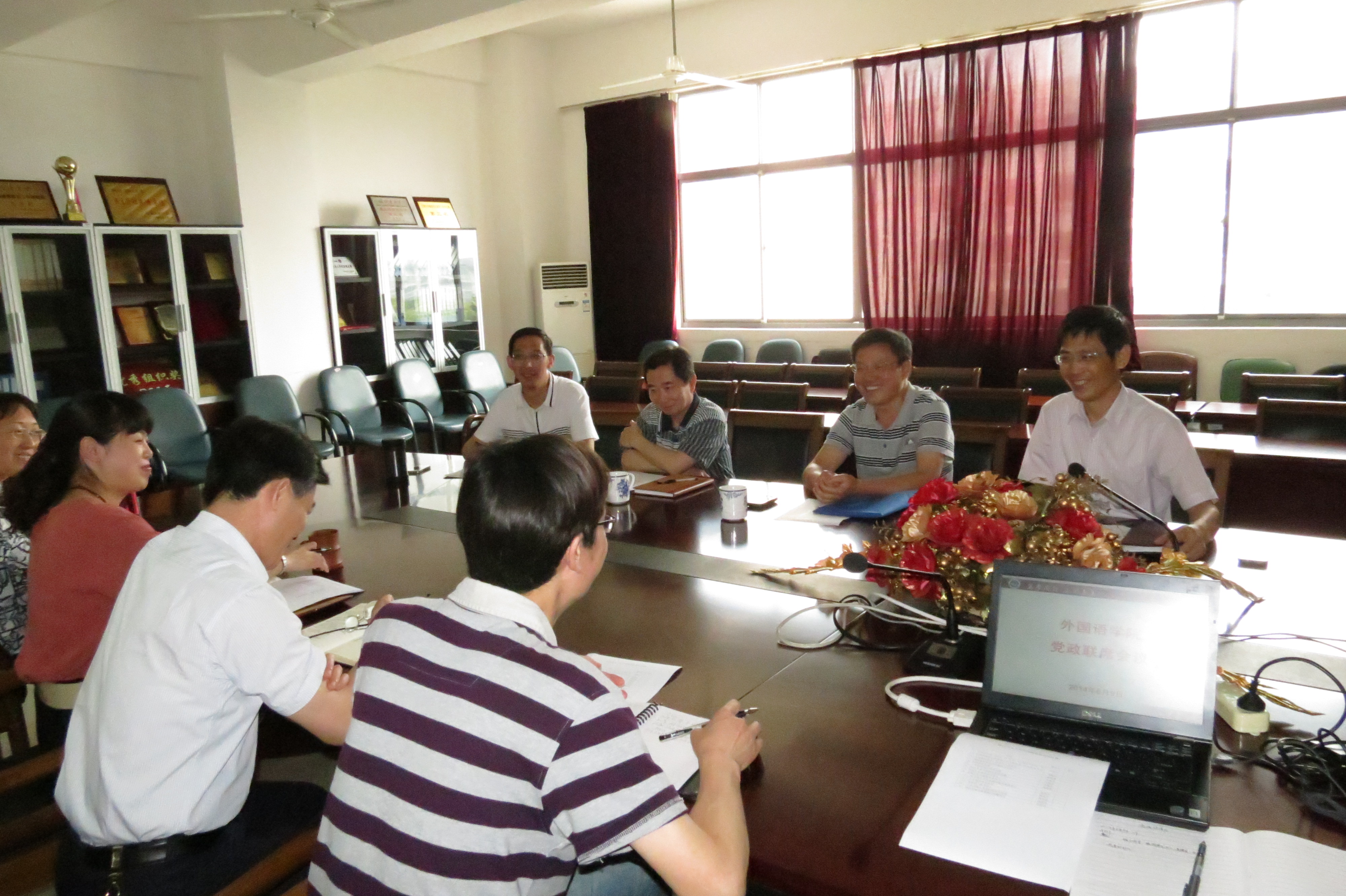我院党委书记周建中首先介绍了江大委【2014】23号文《yl7703永利集团学院(单位)党建和精神文明建设工作考核体系(2014—2016年)》,要求大家对文件特别是考核体系中的一些新提法、新要求要认真学习、统一思想、对照指标完成落实。龚晓斌院长就大学外语基础部正副主任人选提出了建议提交会议讨论,李健雪副院长、施惠平副院长以及赵莹副书记也就各自分管事务提出了若干议题。