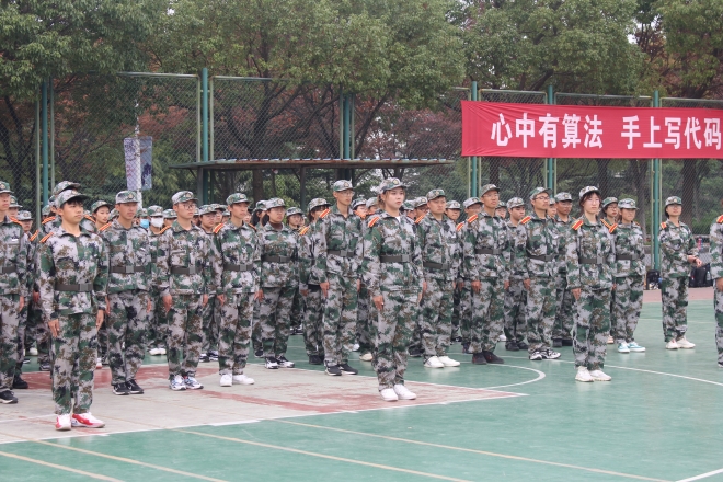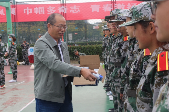 11月2日上午11:00,yl7703永利集团党委书记史志洪、党委副书记刘伯贤、分团委书记陆芳、带训辅导员顾海星来到军训场地,了解大一新生军训情况,亲切慰问并现场检阅了同学们的训练成果。