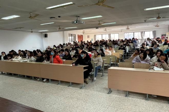 首先,学院党委副书记刘伯贤围绕“实习安排”、“注意事项”以及“就业工作”进行介绍。刘书记表示:大家要充分重视实习实践环节,借助实习的机会了解行业、岗位,为自己的就业最好准备,为后期的职业发展打下基础。随后,日语系副主任管纪龙老师从“诚信教育”、“实习安全”、“实习成长”三个方面进行介绍,英语系副主任杨昊老师从“就业情况”、“论文安排”等方面提醒学生各项注意事项。最后,学院副院长顾琦一动员讲话。顾院长表示:毕业实习是大学学习阶段重要的实践性教学环节之一,是理论与实践相结合的重要方式。希望大家在理想与现实之间明确自身的定位,及时调整心态,从细节处提升自己。最后顾院长提醒大家要及时和指导老师汇报实习情况,及时跟进论文撰写等进度。