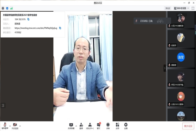 同日晚上,yl7703永利集团党委副书记刘伯贤召开了2021级本科生会议,刘书记号召大家积极高效地进行线上学习。面对疫情的严峻考验,同学们应服从疫情指挥要求,听从学校安排,及时测温上报。他还鼓励同学们多参加锻炼,保持良好的体魄和健康的精神状态。刘书记传达了学院关于教工党员联系宿舍的相关规定,逐一介绍了党员教工的情况,告知每位学生遇到思想、学业、心理、职涯规划等问题都可以咨询宿舍导师,鼓励学生加强与老师的沟通和交流。