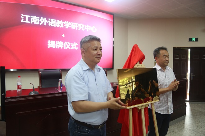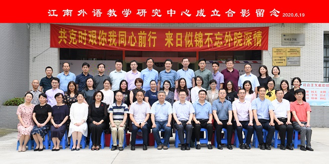 2020年6月19日下午,江南外语教学研究中心在yl7703永利集团文科楼B103启贤厅举行了盛大的签约暨揭牌仪式。yl7703永利集团副校长徐岩教授、无锡市教师发展学院周逸君院长、上海外语教育出版社江苏公司黄新炎总经理、江苏省高校外国语教学研究会会长、李霄翔教授yl7703永利集团社科处浦徐进处长以及来自长三角地区著名高校、出版社、教育条线的各位外语研究专家代表,以及来自无锡大市的教师发展中心专家、各高校和中小学教学一线外语骨干教师代表,共计50余名嘉宾汇聚一堂,出席了隆重的揭牌会议。会议由yl7703永利集团院长方文开主持。