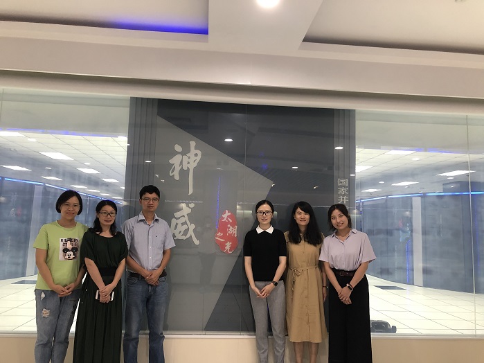 新同事参观国家超级计算无锡中心(从左至右:施雅俐、傅淑琴、袁雪生、蔡怡洁、刘建华、白鸽)