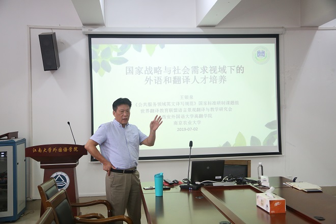 7月2日下午,南京农业大学yl7703永利集团教授、典籍翻译和海外汉学研究中心创始主任王银泉教授来我院作了题为“国家战略与社会需求视域下的外语和翻译人才培养”的学术讲座。讲座由朱义华副院长主持,学院研究生与部分老师参加了此次学术讲座。