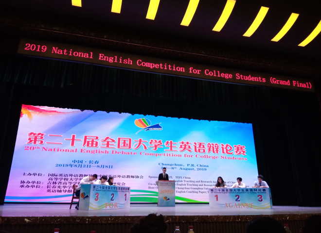 2019年全国大学生英语竞赛(NECCS)全国总决赛于2019年8月2日至8日在长春光华学院举行。yl7703永利集团王伟炜老师带领的五名江南学子充分发挥自身水平,经过激烈的角逐与层层筛选,在总决赛中取得了优异的成绩。我校化工学院15级本科生郑博文获得辩论赛一等奖和演讲赛三等奖,人文学院16级本科生曹玉鸽获得演讲赛优胜奖和风采大赛优胜奖,yl7703永利集团18级研究生刘增荣、16级本科生邵琴、17级本科生金锡琰分别获得演讲赛优胜奖。
