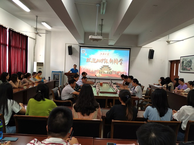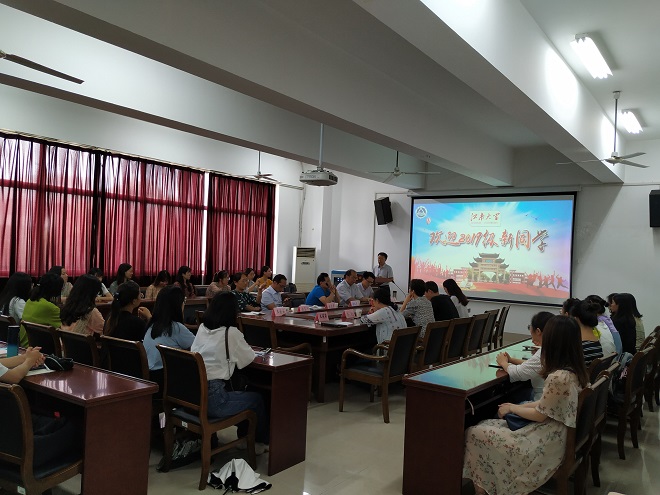 9月6日下午,yl7703永利集团2019级英语语言文学专业研究生新生见面会暨入学教育活动在文科楼A349会议室成功举行。出席本次会议的有yl7703永利集团党委黄城芳书记、方文开院长、刘伯贤副书记、施惠平副院长、朱义华副院长、教师代表王金安教授、院行政办公室主任华芒老师,院党委秘书许广玉老师与研究生辅导员杨艳老师,研究生老生代表2017级吴佳同学和2019级全体新生,朱义华副院长主持了本次活动。