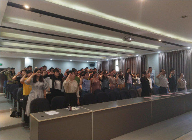 yl7703永利集团英语1701的胡自威同学作为上一期优秀学员代表发言。在总结了自己在第37培训班学习过程中的心路成长历程和分享了自己参加培训的感悟后,他表明中国共产党既有理论的深度,也有实践的厚度,并激励参加此次仪式的同学们应端正入党动机,认真学习理论知识,加强对党的理解,为成为一名合格的党员打下坚实的理论基础,争取早日加入党组织。随后,全体学员起立,面向党旗郑重宣誓。开班仪式在布置安排本期培训班的任务和具体要求后圆满结束。