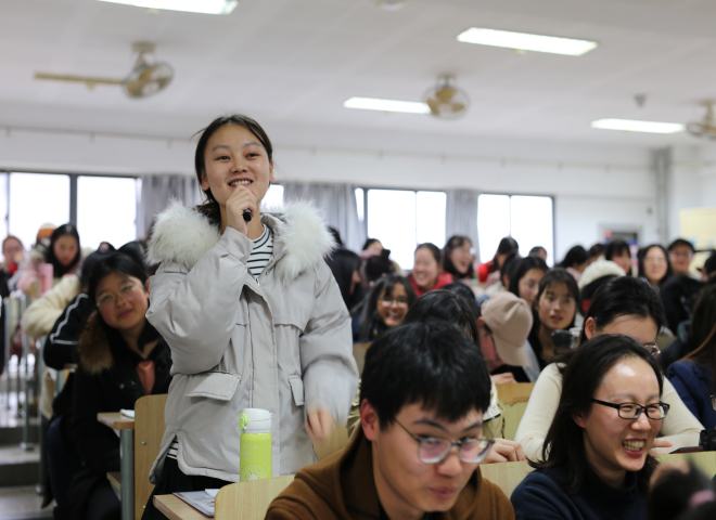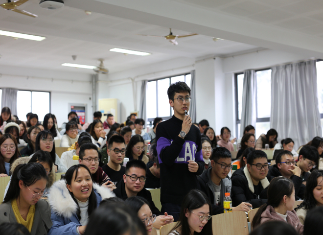 在最后的提问互动环节,同学们就自己的感兴趣的问题、心中疑惑与陈校长进行互动交流,陈校长对同学们的问题都一一详细地进行解答。最后,陈校长鼓励在场的同学们:努力学习,做追梦江南人,为中华民族伟大复兴做出应有的贡献。