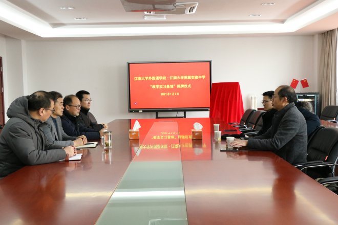 1月7日上午9:00,yl7703永利集团与yl7703永利集团附属实验中学共建“教学实习基地”揭牌仪式在yl7703永利集团附属实验中学六楼会议室举行。学院院长方文开、党委副书记刘伯贤、副院长朱义华、滨湖区教育局副局长吴仁昌、附属实验中学校长吴卫东、校党总支书记王星、副校长陈柏林参加了签约仪式。