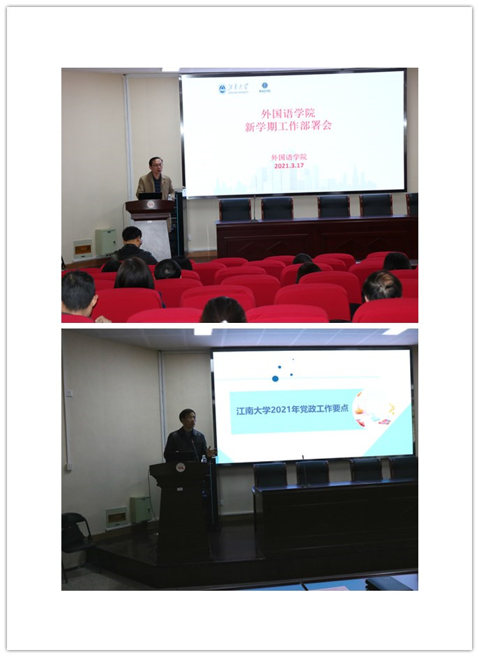 3月17日下午,yl7703永利集团在文科楼B103召开新学期工作部署会,学院党委书记史志洪解读了学校2021年度党政工作要点,并就加强学院党建工作、全面从严治党和意识形态工作等做了重点介绍;院长方文开主要围绕校、院“十四五”规划阐述了学院当前面临的机遇与挑战以及学院今年和未来几年的工作目标和要求。